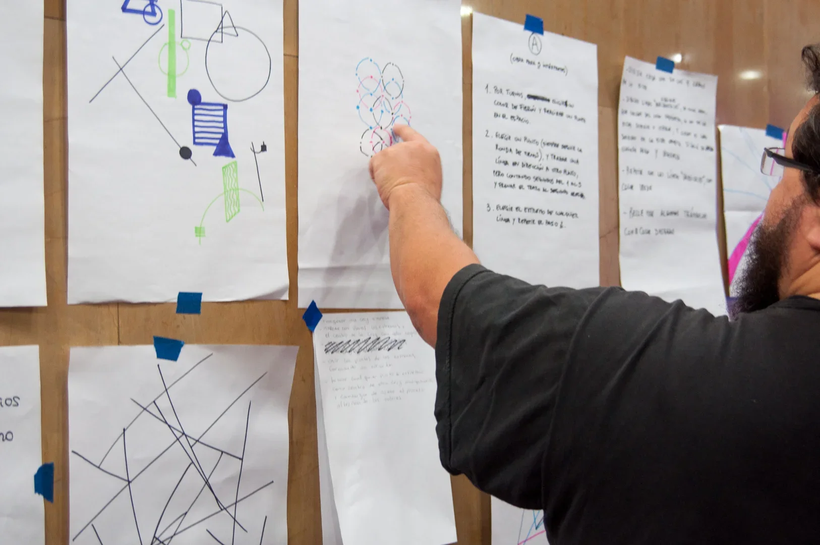 Partiendo de las bases planteadas por el artista Sol LeWitt, este taller tiene como motivo desdibujar las fronteras que la programación impone a quienes la desconocen, creando un espacio que permita el juego y la experimentación. El código creativo, una base de matemática y una profunda reflexión sobre la práctica artistica son los pilares para la realización de obras en este espacio.